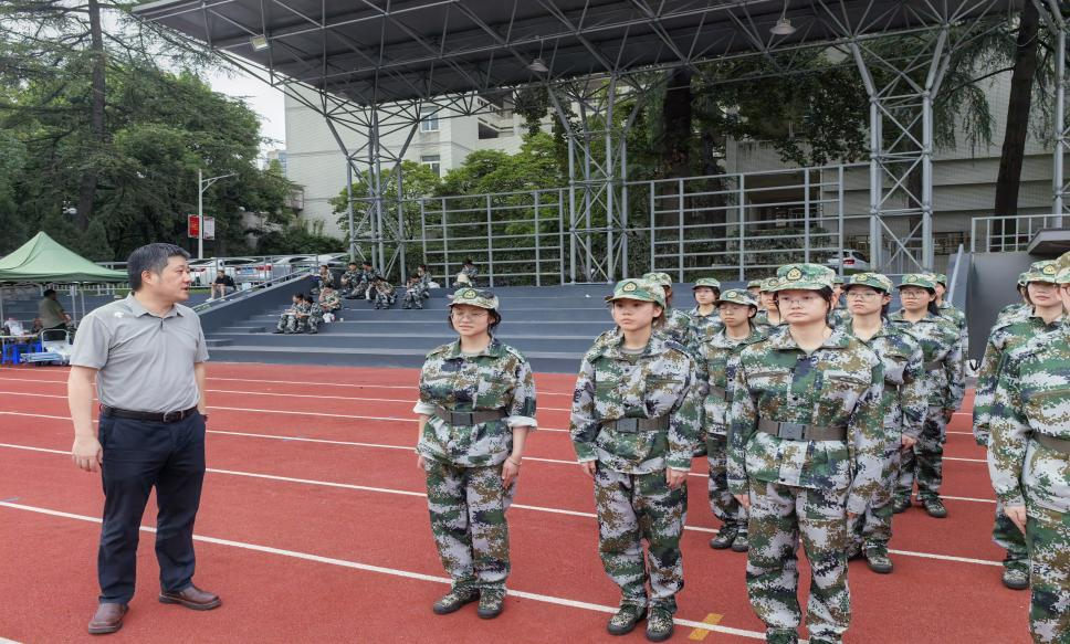 徐达书记首先来到训练队伍旁,实地察看新生军训进展情况。他认真观察新生队列训练、军姿指导等环节,详细了解新生在军训期间的训练强度、作息安排等情况,重点询问新生是否适应军训节奏、是否存在生活上的困难,叮嘱新生在刻苦训练的同时注意劳逸结合,做好防晒与补水,以良好的身心状态投入训练。