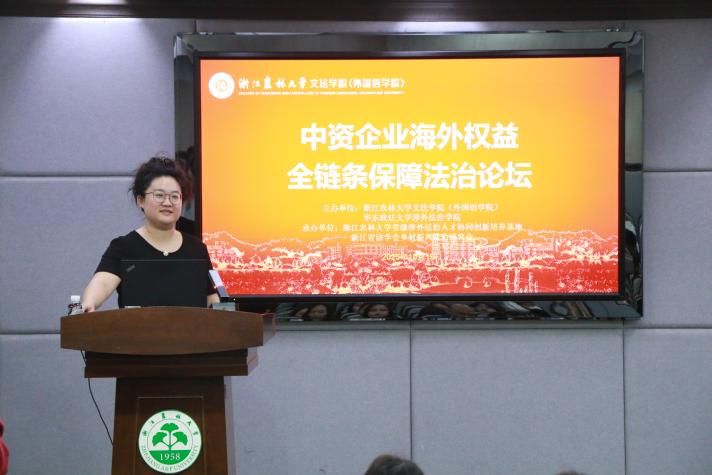 2025年10月19日下午,“中资企业海外权益全链条保障法治论坛”于浙江农林大学东湖校区图书馆第二报告厅顺利举行。本次论坛由浙江农林大学文法学院(外国语学院)主办,浙江农林大学省级涉外法治人才协同创新培养基地、浙江省法学会乡村振兴法治研究会共同承办。