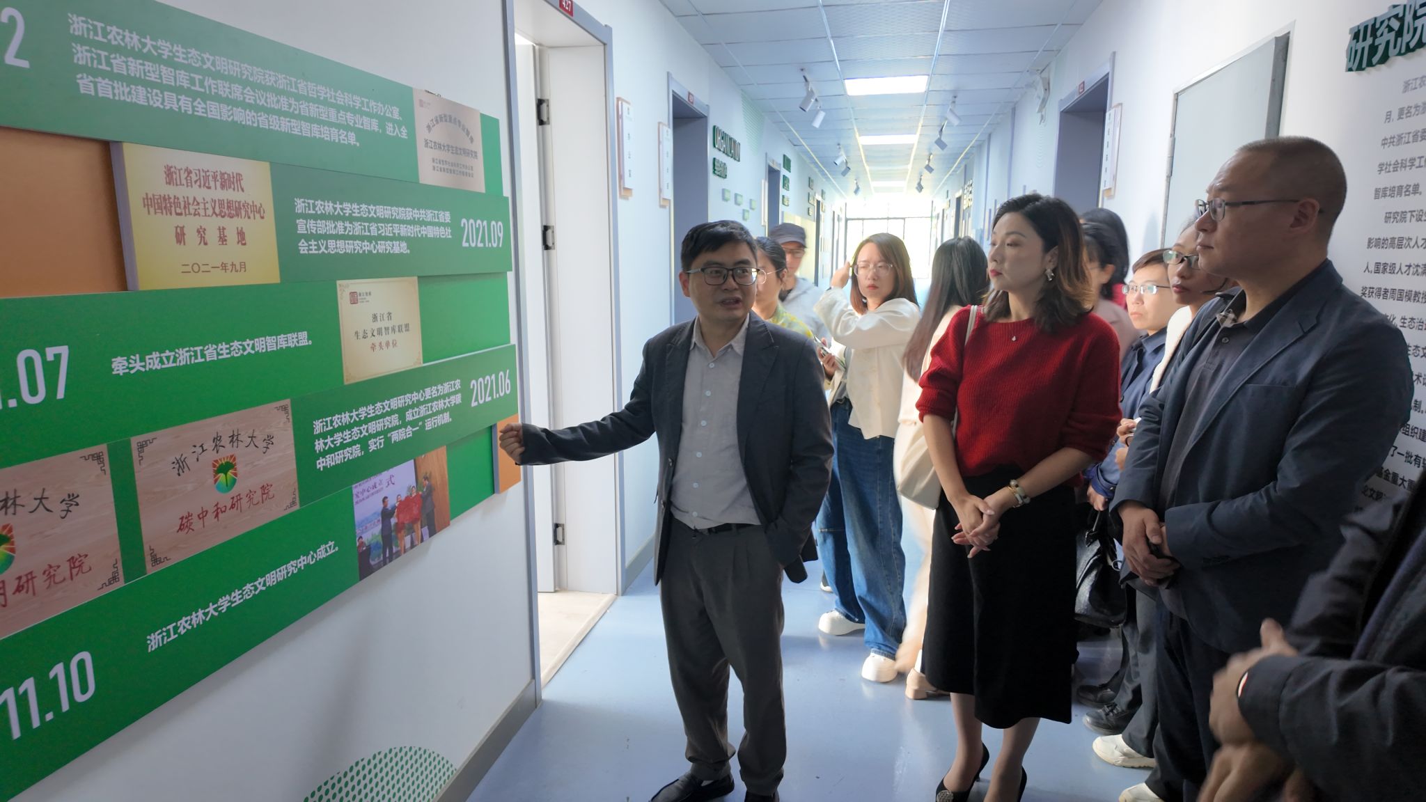 陈江、韩晶晶一行还参观了浙江农林大学生态文明研究院,为下阶段工作开展汲取新思路、拓展新视野展。