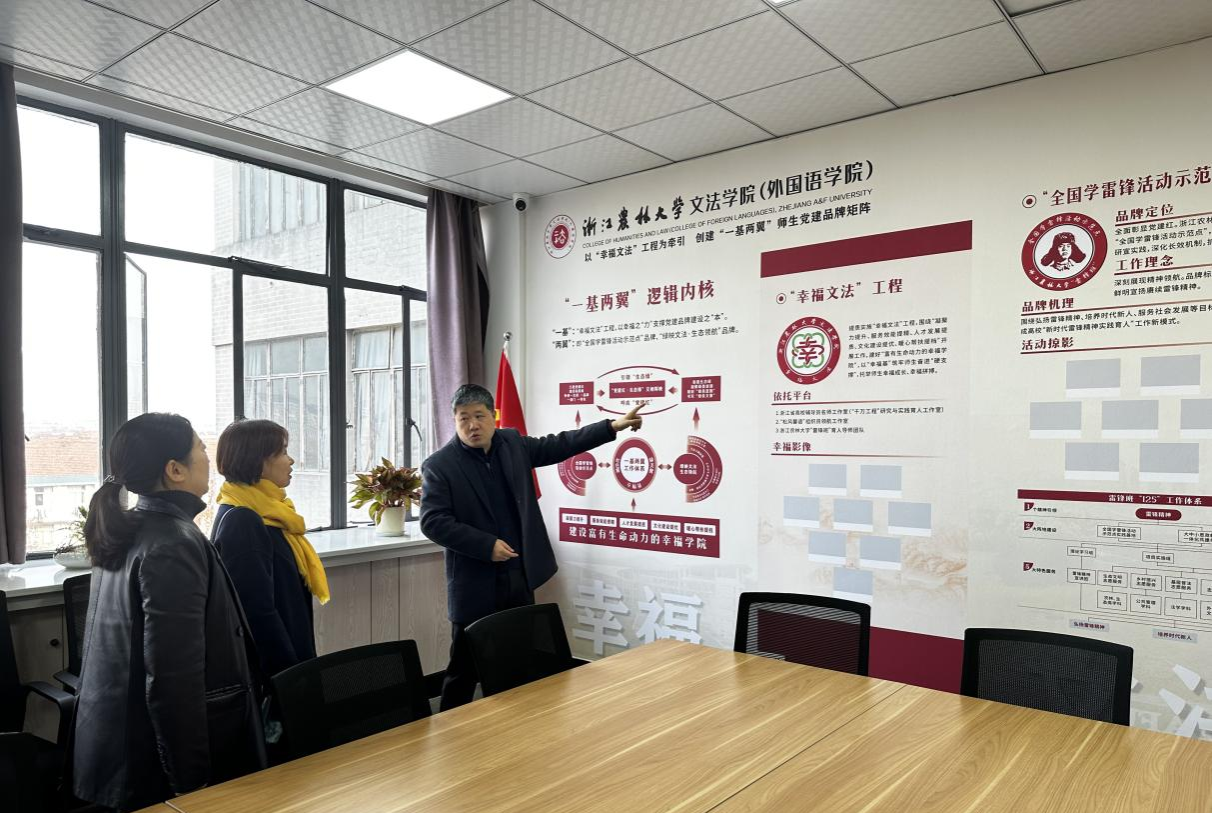 徐达详细阐述了文法学院“幸福文法”工程内涵,介绍了“幸福文法之家”建设情况,并带领与会人员一同参观了“幸福文法”各功能区域,这是学院落实“幸福农林”建设的重要举措,郭爱枝对场地布局与设施配置予以肯定。