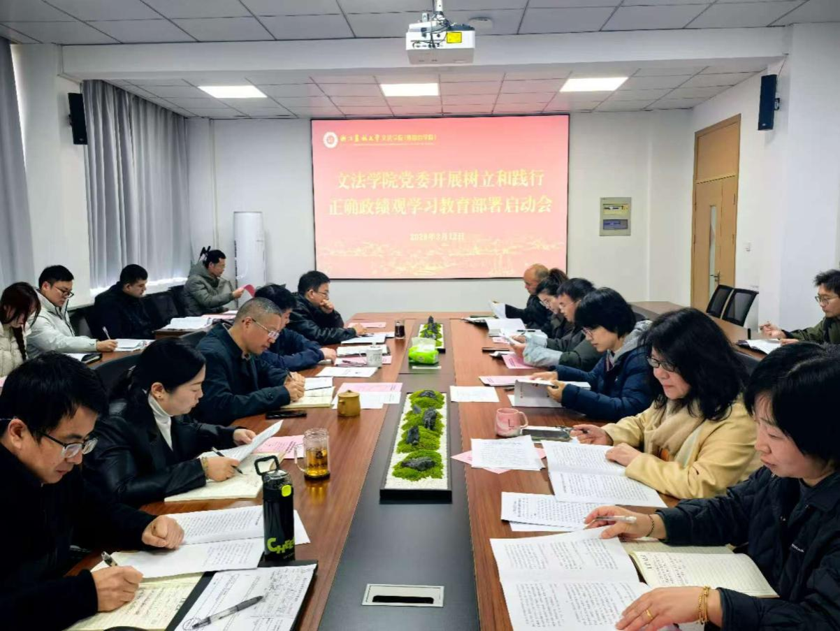 3月12日,文法学院在衣锦实验楼612会议室,召开开展树立和践行正确政绩观学习教育部署启动会。学院领导班子成员,教工党支部书记、副书记,学生党支部书记,学科部门负责人,专兼职组织员等30余人参加会议。会议由党委副书记(主持工作)徐达主持。
