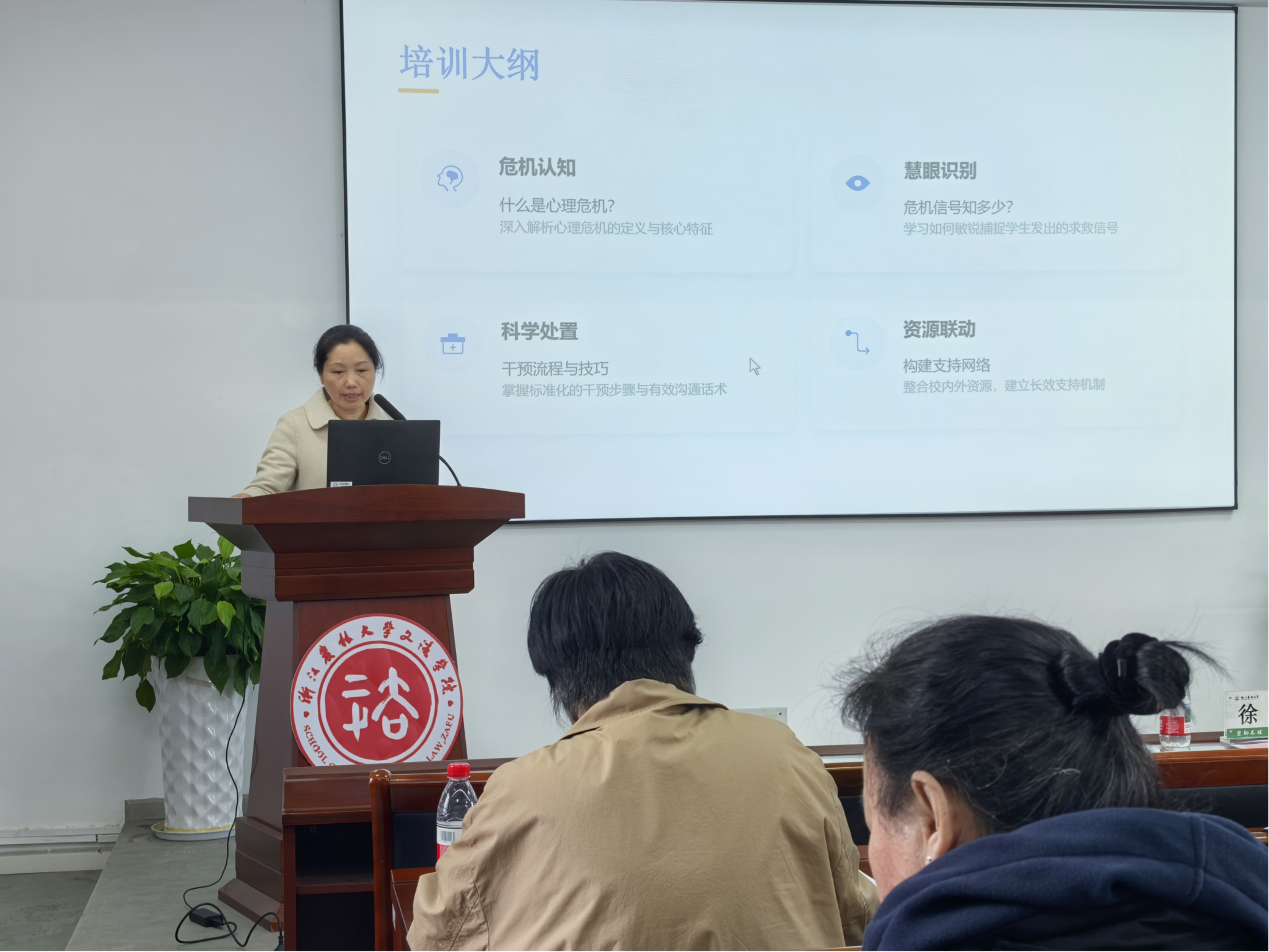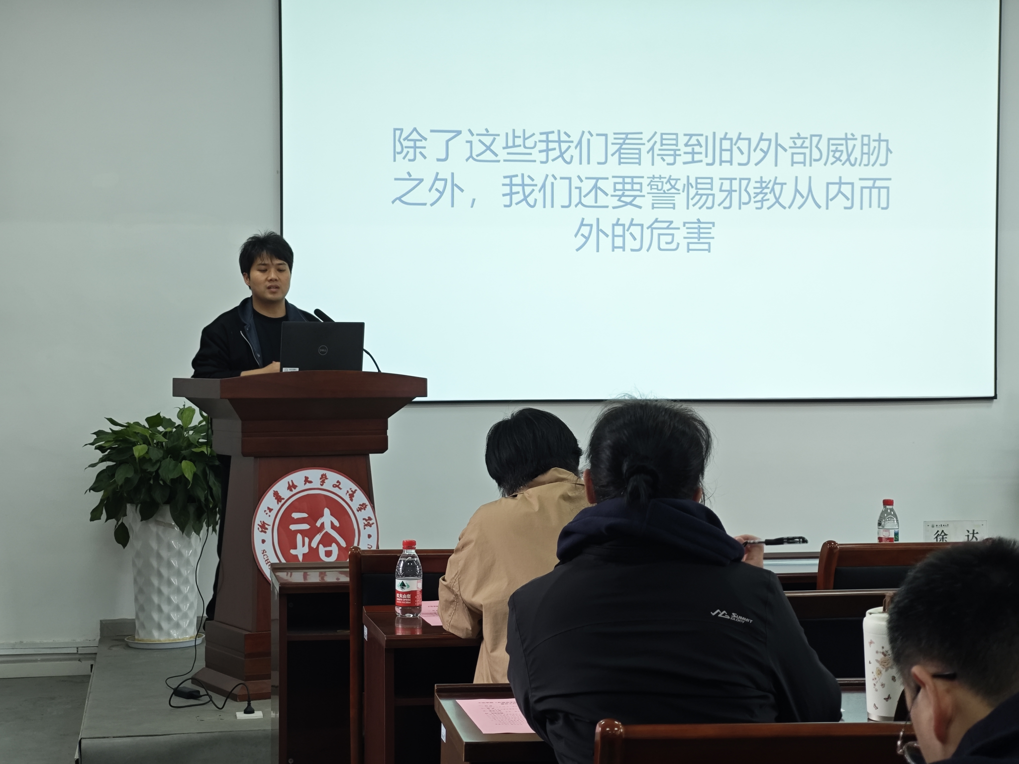 在培训环节,校心理健康教育中心主任谭娟晖为全体班主任做心理健康专题培训,重点讲解学生心理问题的识别方法与干预策略,并介绍了学校现有的心理健康支持资源,帮助班主任掌握谈心谈话技巧和初步心理疏导能力,提升心理育人工作的专业性与实效性。院学生办主任黄君做专项工作培训,围绕防范宗教和邪教渗透、校园安全舆情应对处置等内容作了详细介绍,进一步夯实班主任岗位履职基础。