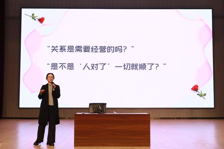 心理咨询师、婚姻家庭咨询师李汀沙带来心理健康主题教育讲座。李老师结合大学生常见心理困扰、亲密关系经营、情绪管理等内容,以“从‘我’到‘我们’——大学生健康关系观培育”为切入点,讲解依恋类型、沟通误区、爱的五种语言等实用知识,引导学生学会自助、互助与求助,树立健康积极的人际交往与心理调适观念。本次心理健康教育有效帮助同学们正视心理需求、掌握调适方法,进一步提升了全体学生的心理健康素养与人际沟通能力,为营造和谐友爱的校园氛围奠定坚实基础。