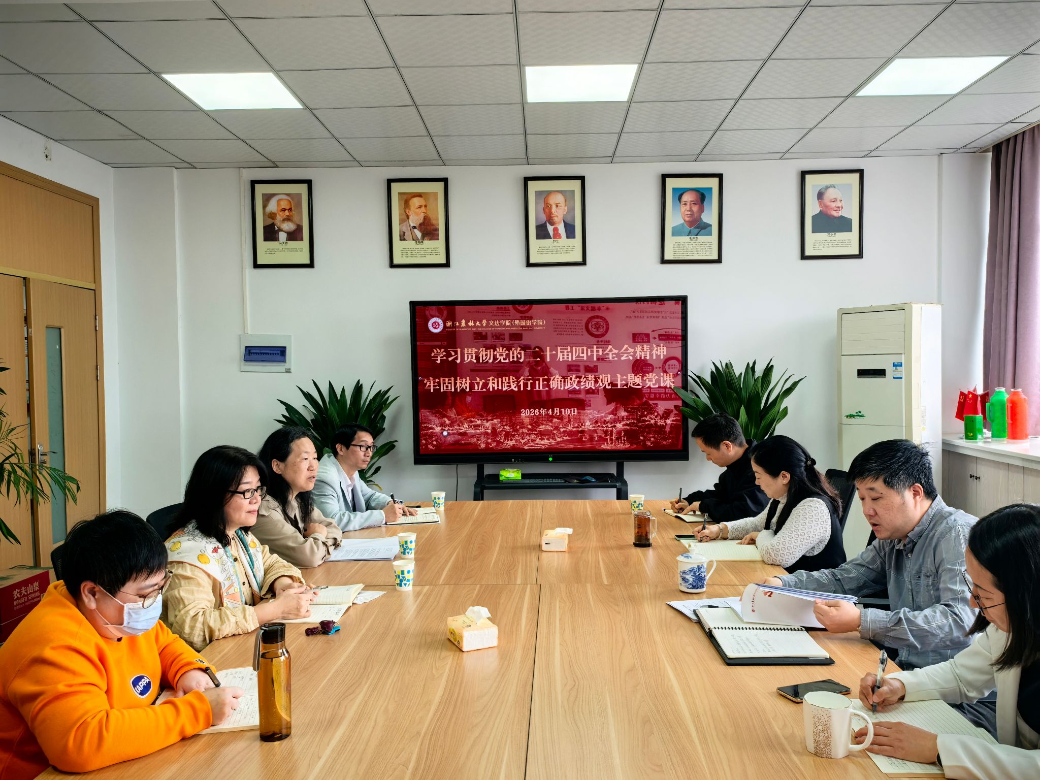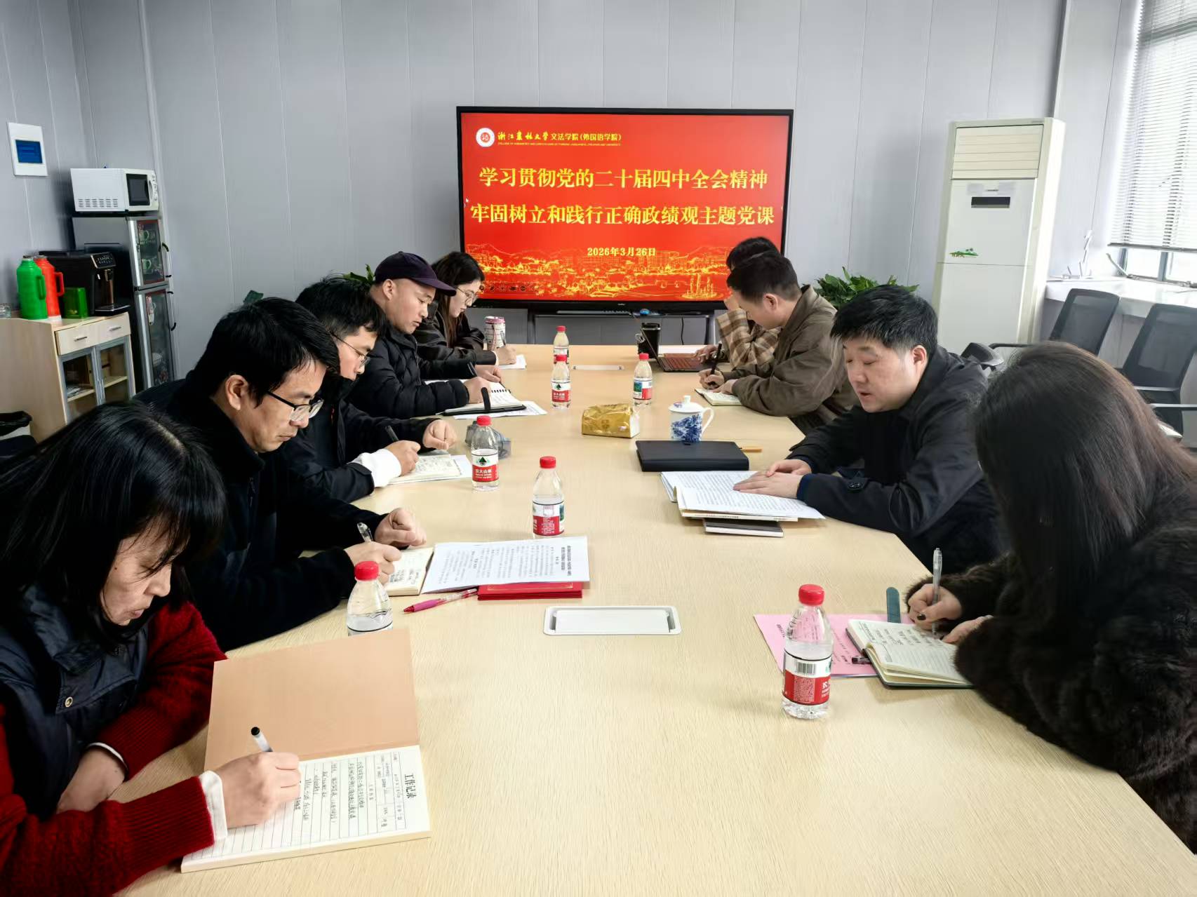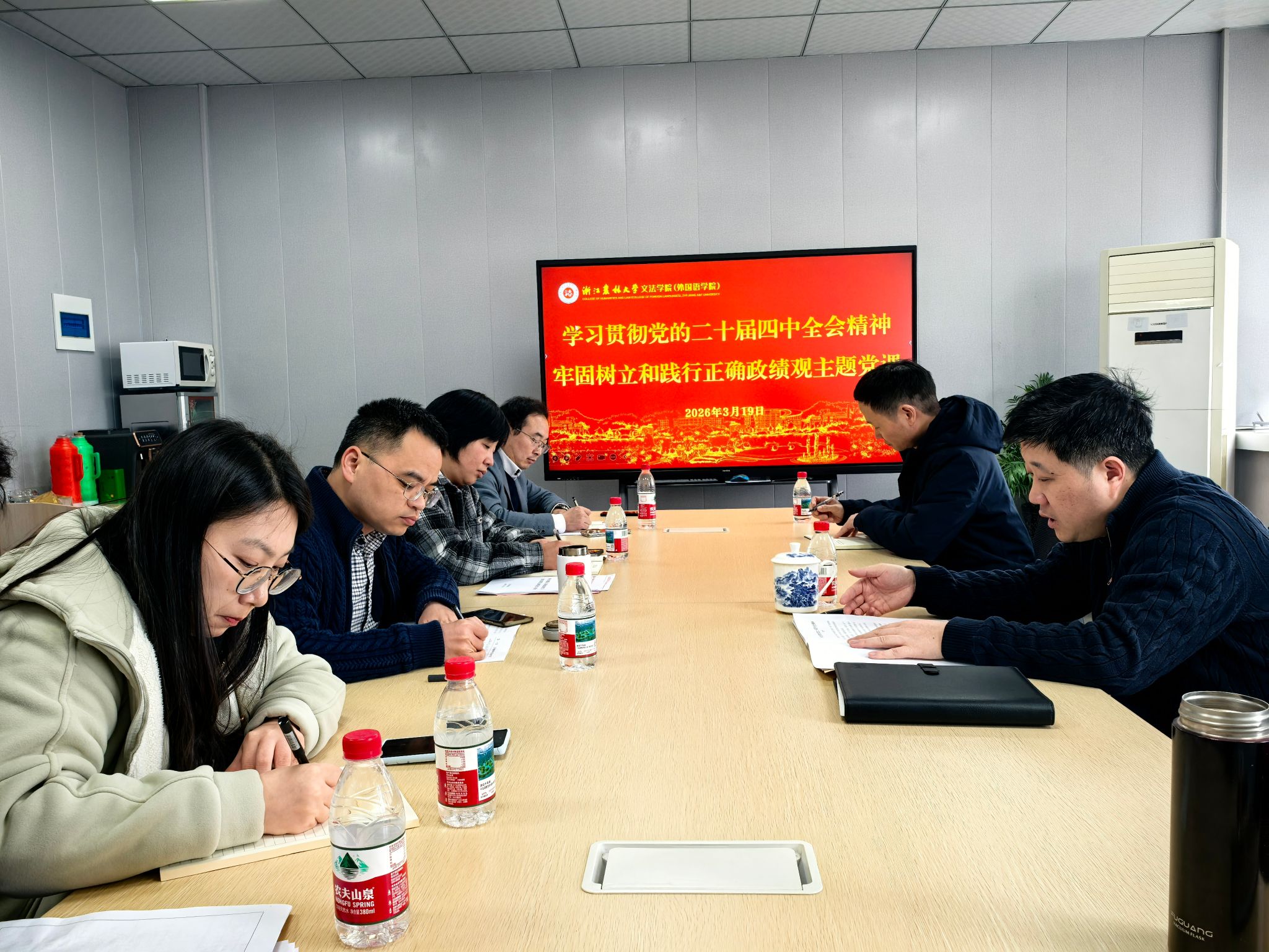 3月19日-4月10日,文法学院党委副书记(主持工作)徐达以“深入学习贯彻党的二十届四中全会精神牢固树立和践行正确政绩观”为题,在实验楼610会议室为学院教工党支部的支委们讲授专题党课。