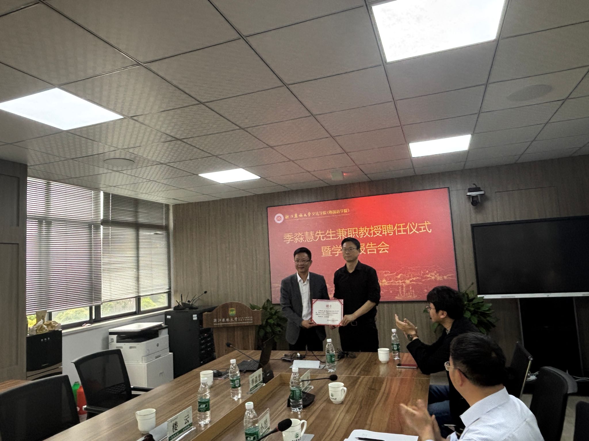 张永亮为季淼慧颁发兼职教授聘书。
