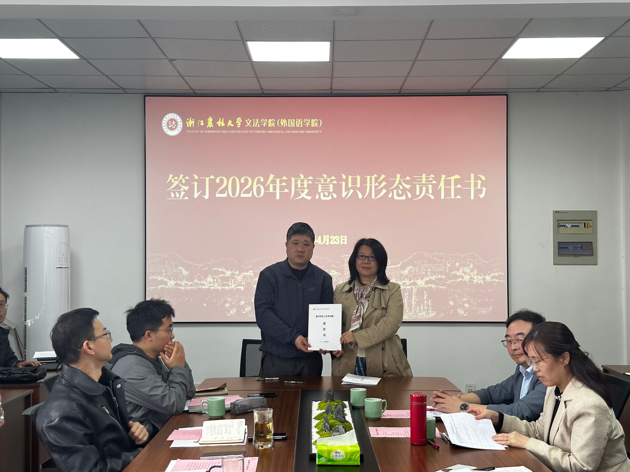 会议专题听取了2026年春季学期学院意识形态与学生心理工作研判报告,并与各学科部门(党支部)签定了2026年度《学科目标任务责任书》《党风廉政责任书》《意识形态责任书》《综合治理责任书》。