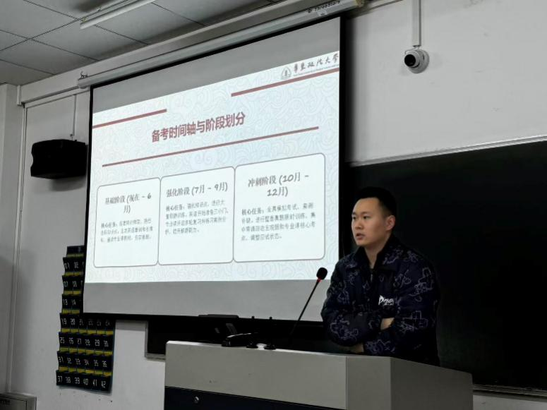 针对考研备考周期长、压力大,学子们易出现心态崩溃、焦虑懈怠等问题,潘高峰结合自己备考期间的真实经历,重点分享了考研心态调整的实用方法。他结合自身经验,分享了缓解焦虑的具体方式,比如合理制定阶段性目标、避免无意义的内卷攀比、适当留出放松时间调节身心、遇到难题及时向师长同学沟通求助等。他鼓励在场学子,要始终保持坚定的信念,接纳自己的不完美,以平稳从容的心态应对备考中的各类难题,做到劳逸结合、稳步前行,切忌因一时的状态波动放弃目标。
