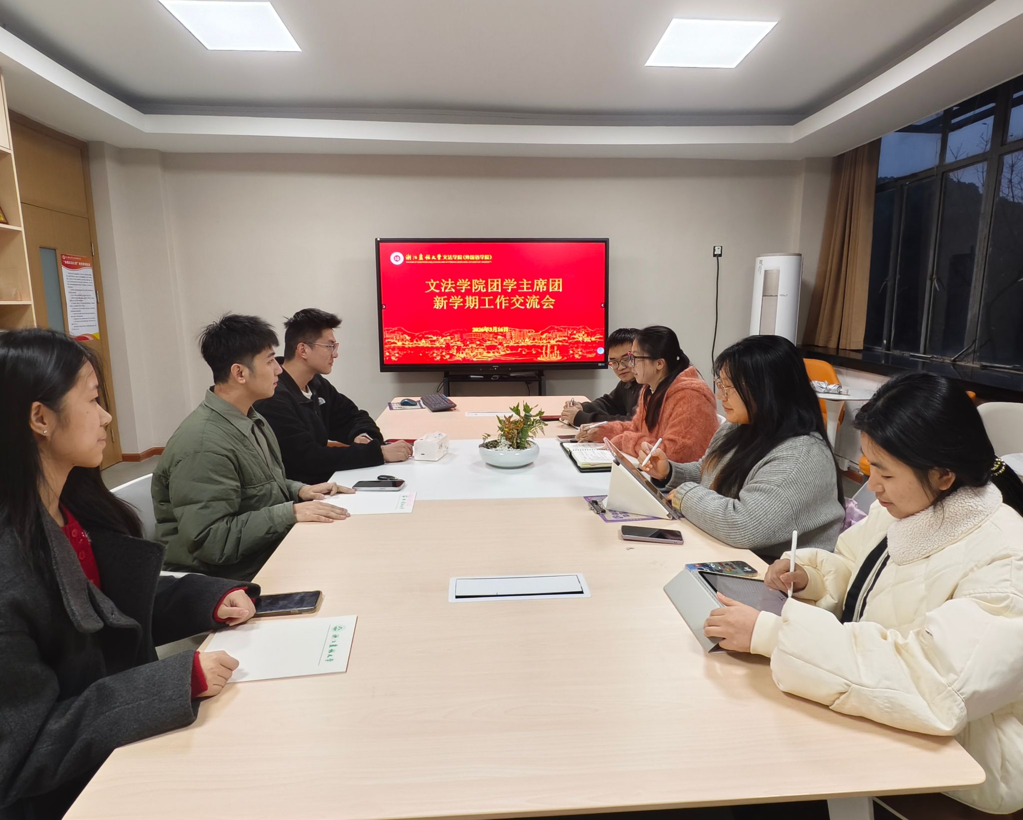 3月16日晚,学院团委书记宗亚奇在文法学院实验大楼516会议室主持召开了文法学院团学主席团新学期工作交流会,学生会秘书长陈蕲鑫和主席团全体成员参与会议。